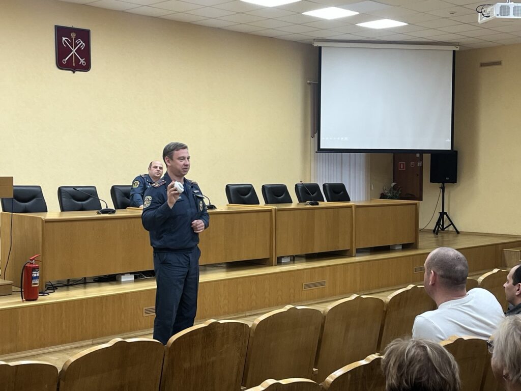 Сотрудники МЧС России в совместной работе с представителями ВДПО провели инструктаж по пожарной безопасности для сотрудников администрации Петродворцового района Санкт-Петербурга.